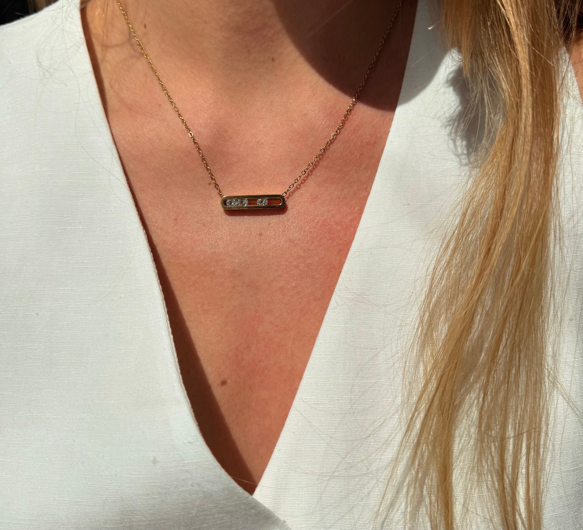 A timeless stainless steel PVD-coated necklace crafted for daily layering. Waterproof, sweat-resistant, and color-stable, it stays bright and polished through every season.
